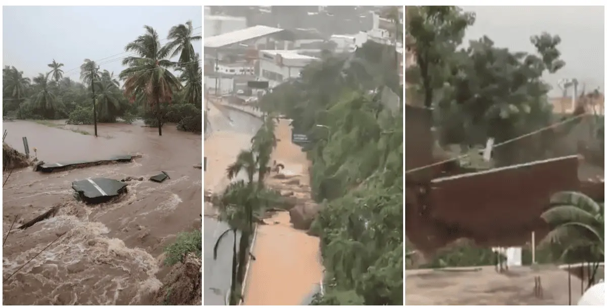 A través de videos e imágenes difundidas en redes sociales, se puede apreciar la magnitud de los daños que han ocasionado las intensas lluvias y fuertes vientos de "John", que se ha intensificado nuevamente a huracán categoría 1 luego de que se degradara a tormenta tropical.