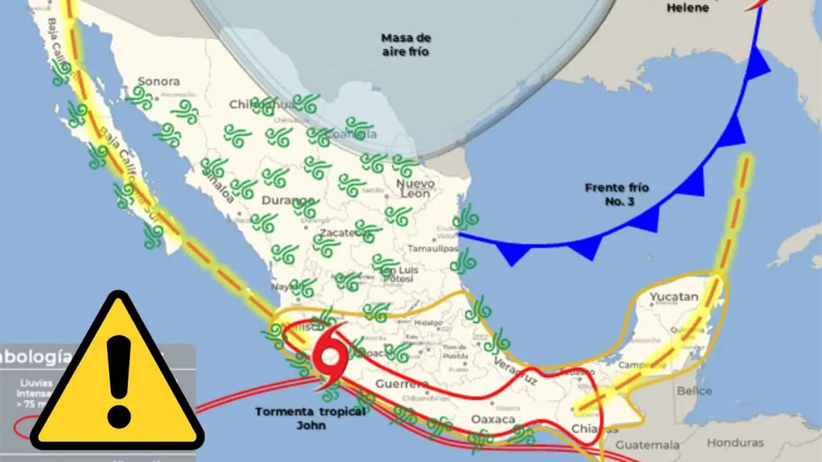 De acuerdo con el reporte de la Comisión Nacional del Agua (Conagua), John reporta un comportamiento variable, por lo que la alerta se enciende para Oaxaca, Guerrero, Michoacán, Colima y Jalisco, que serán los estados más afectados tras su paso.