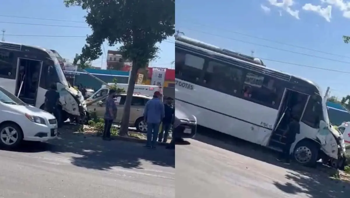 Camión urbano se estrella contra 2 camionetas en la colonia Las Vegas, Culiacán