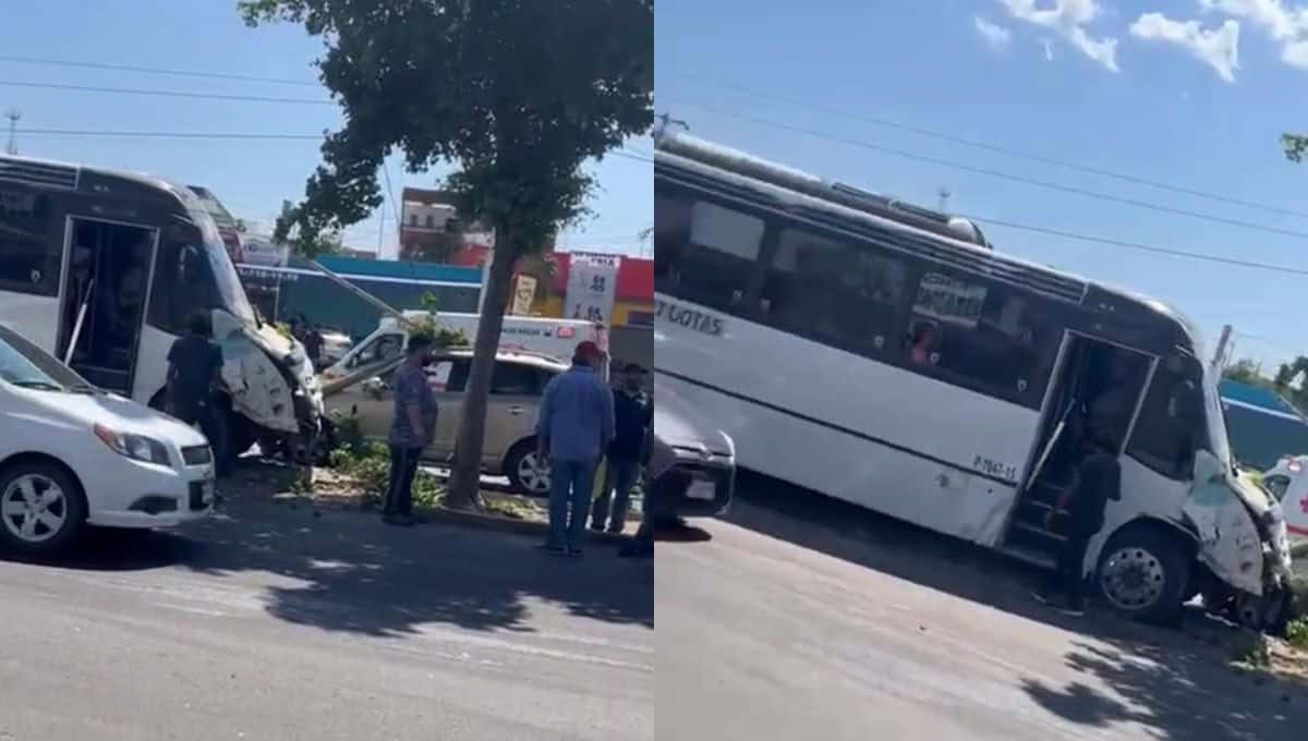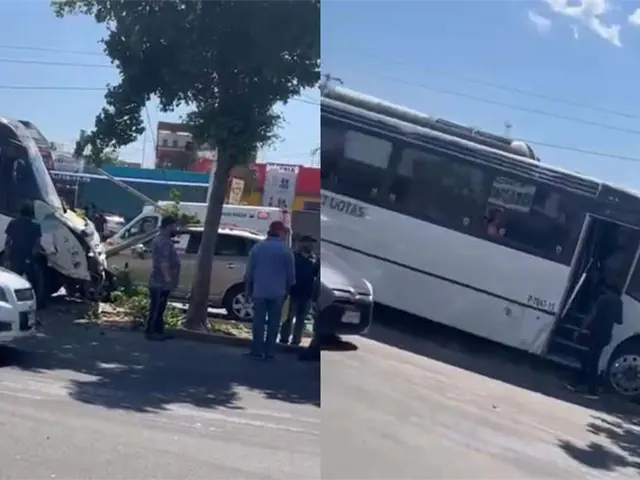 Un fuerte choque se registró en la colonia Las Vegas cuando un camión urbano chocó con dos camionetas. Los agentes de seguridad acudieron al lugar para realizar las diligencias del accidente.
