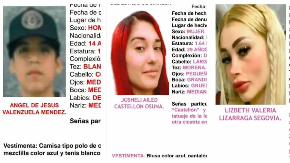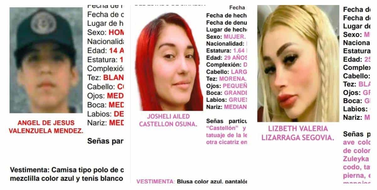 Se trata de la sustracción ilegal de Ángel de Jesús de 14 años y de Lizbeth Valeria y Josheli Ailed, de 25 y 29 años respectivamente.