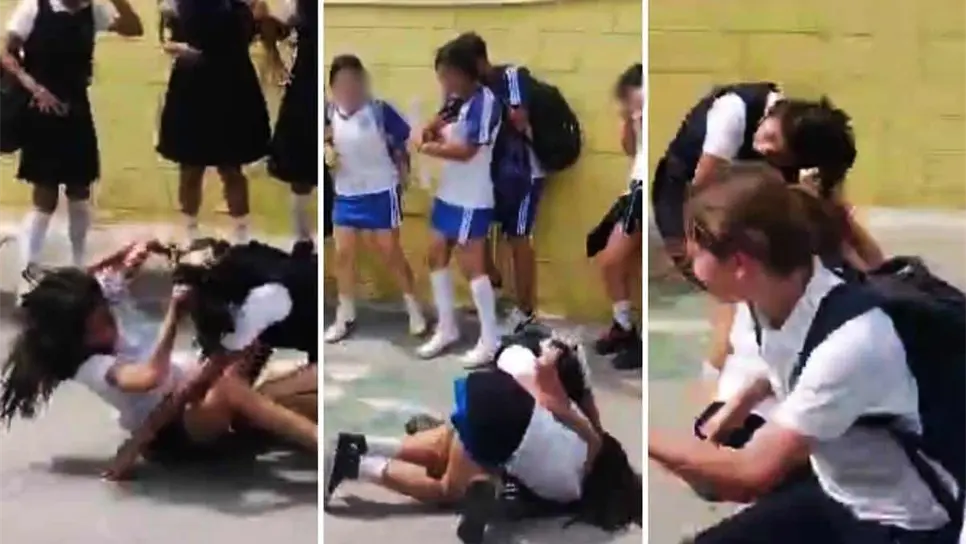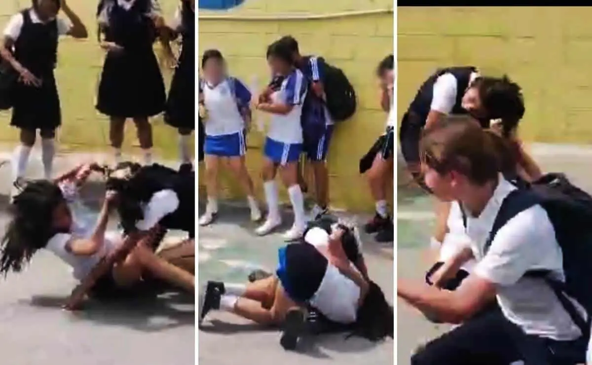 Mientras una multitud de adolescentes de la misma institución educativa graba y les gritan porras a las menores, se acercan más curiosos incluso estudiantes de la prepa Cobaes, quienes también se han visto envueltos en riñas recientemente en las afueras del mercado de la zona 30.