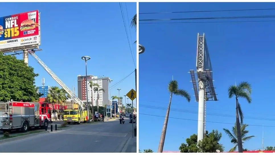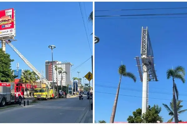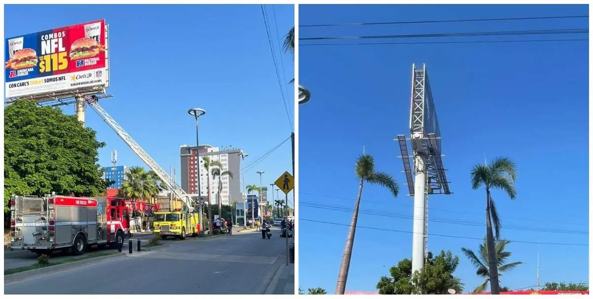 Quien de forma extraoficial se dijo es residente de la Isla de la Piedra, de manera inesperada subió hasta la parte alta de una estructura metálica donde se encuentra un anuncio espectacular.
