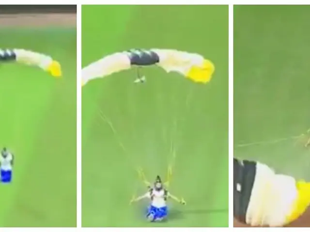 Fue justo después de la primera carrera de Yaquis y cuando se encontraba en el turno al bat Anthony García, cuando tanto espectadores como narradores se sorprendieron por el descenso de una joven paracaidista al jardín central.