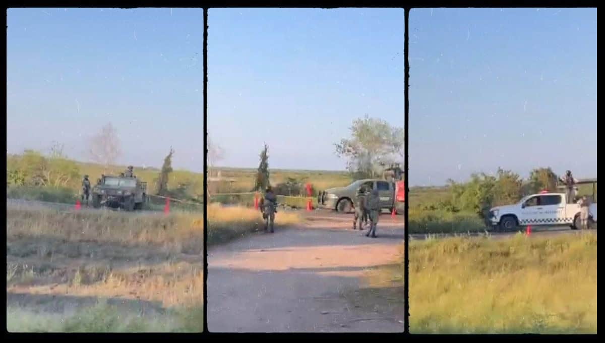 Elementos del Ejército Mexicano y Guardia Nacional arribaron al lugar y acordonaron el área para realizar las diligencias correspondientes.