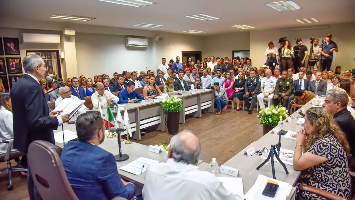 El alcalde de Ahome, Gerardo Octavio Vargas Landeros, hizo entrega de su tercer informe de gobierno, ante regidores, funcionarios, autoridades civiles e invitados especiales, durante sesión ordinaria de Cabildo, en el Palacio Municipal.