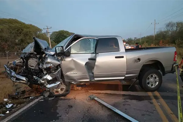 La camioneta Dodge Ram quedó prácticamente destruida del frente durante el percance. La zona fue acordonada en espera de que arribaran las autoridades.