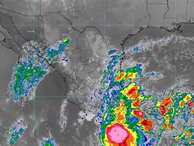 Para comenzar la semana, el lunes se prevé que los remanentes de la depresión tropical Nadine se ubiquen en el golfo de Tehuantepec, intensificando una zona de baja presión con probabilidad de desarrollo ciclónico en el noreste, oriente y sureste de México.