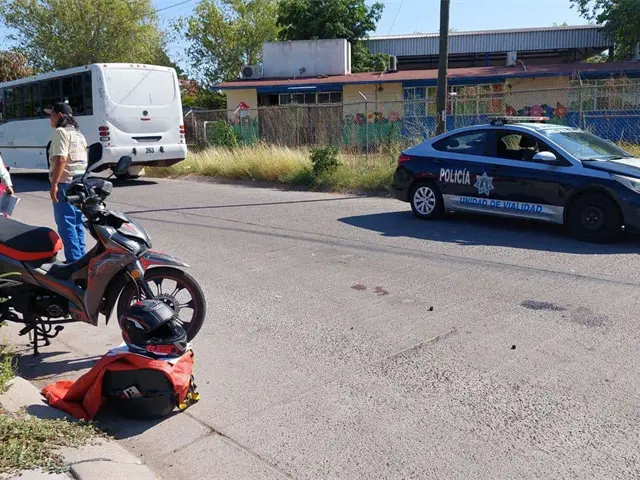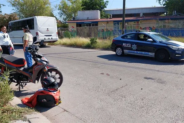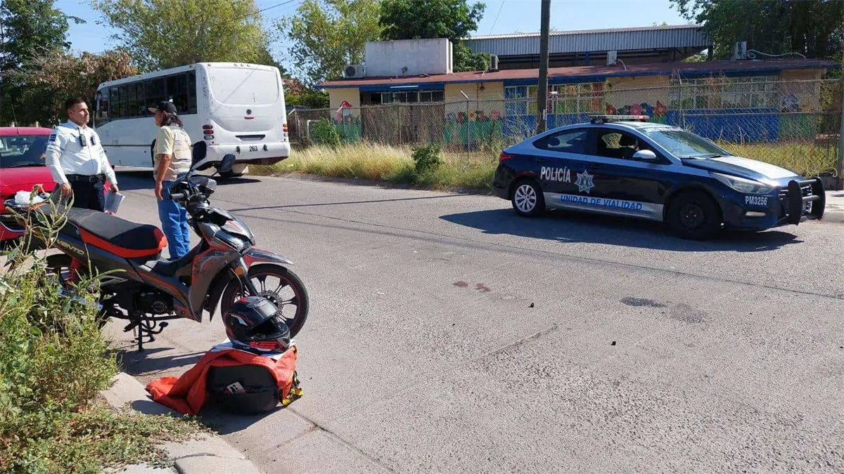 El accidente se registró ayer lunes 21 de octubre, en el cruce de la calle Justo Sierra y Jesus Gonzáles Ortega, del fraccionamiento San Fernando; entre una motocicleta de la marca Vento, de color rojo con negro, y un camión urbano marcado con el número 263, de la ruta Texas- San Fernando.
