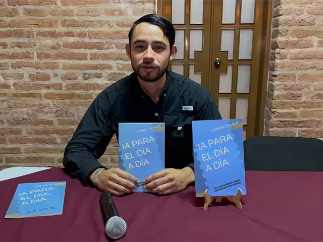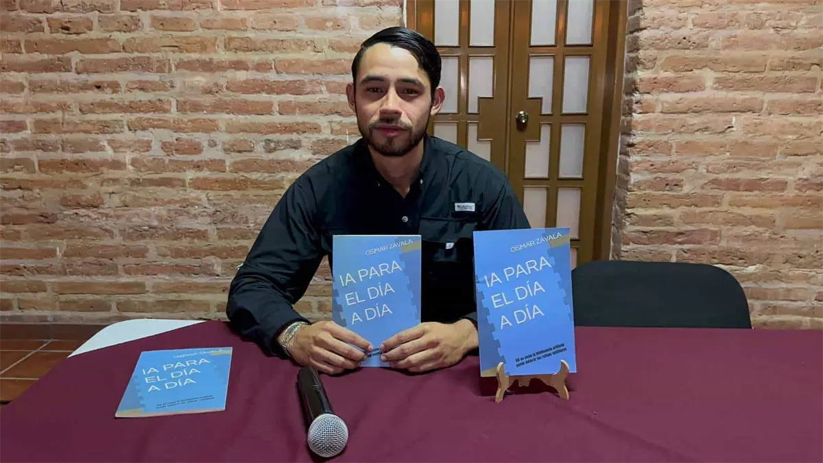 Osmar Zavala, un joven de 24 años de edad, comunicador en Luz Noticias, presentó esta tarde-noche en el Museo Regional del Valle del Fuerte y con apoyo del Ayuntamiento de Ahome, el lanzamiento de su reciente libro, titulado "IA para el día a día".