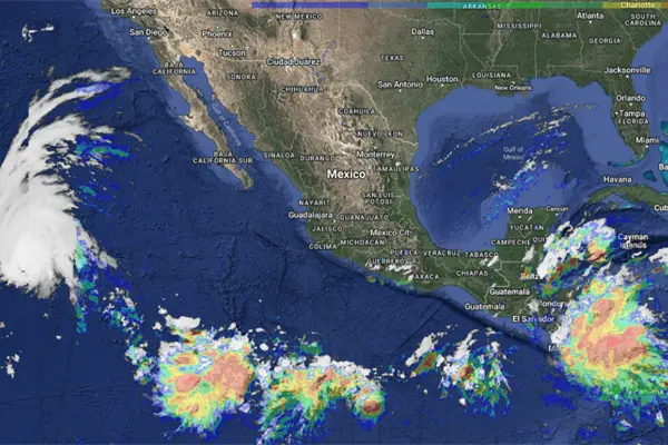 Finalmente, una circulación anticiclónica en niveles medios de la atmósfera mantendrá el ambiente caluroso a muy caluroso sobre entidades del noroeste de la República Mexicana, con temperaturas máximas de 40 a 45 °C en Sonora y Sinaloa.
