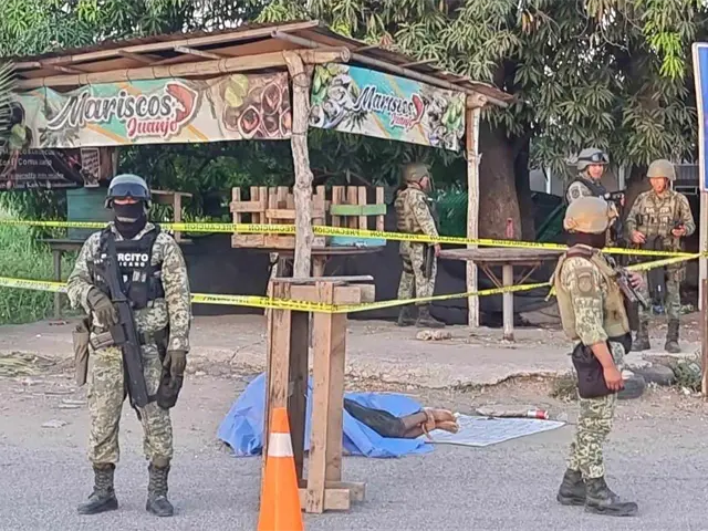 Al llegar los militares observaron los cuerpos en una parada de camiones de un expendio.
