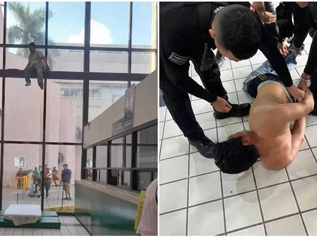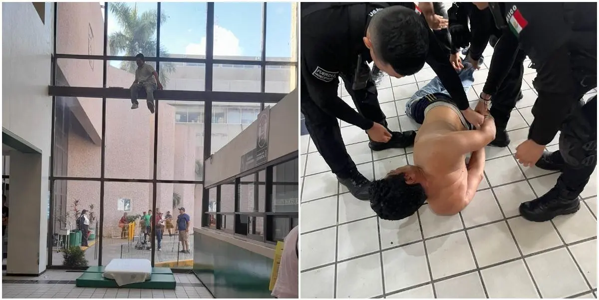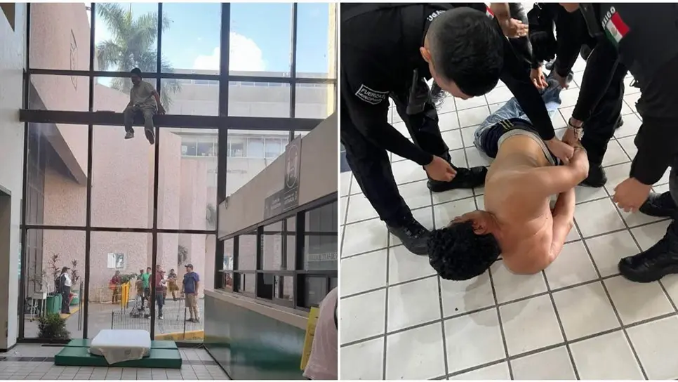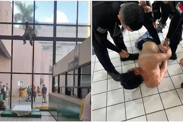 Detienen a sujeto por alterar el orden y amenazar con arrojarse de ventanal en IMSS Los Mochis