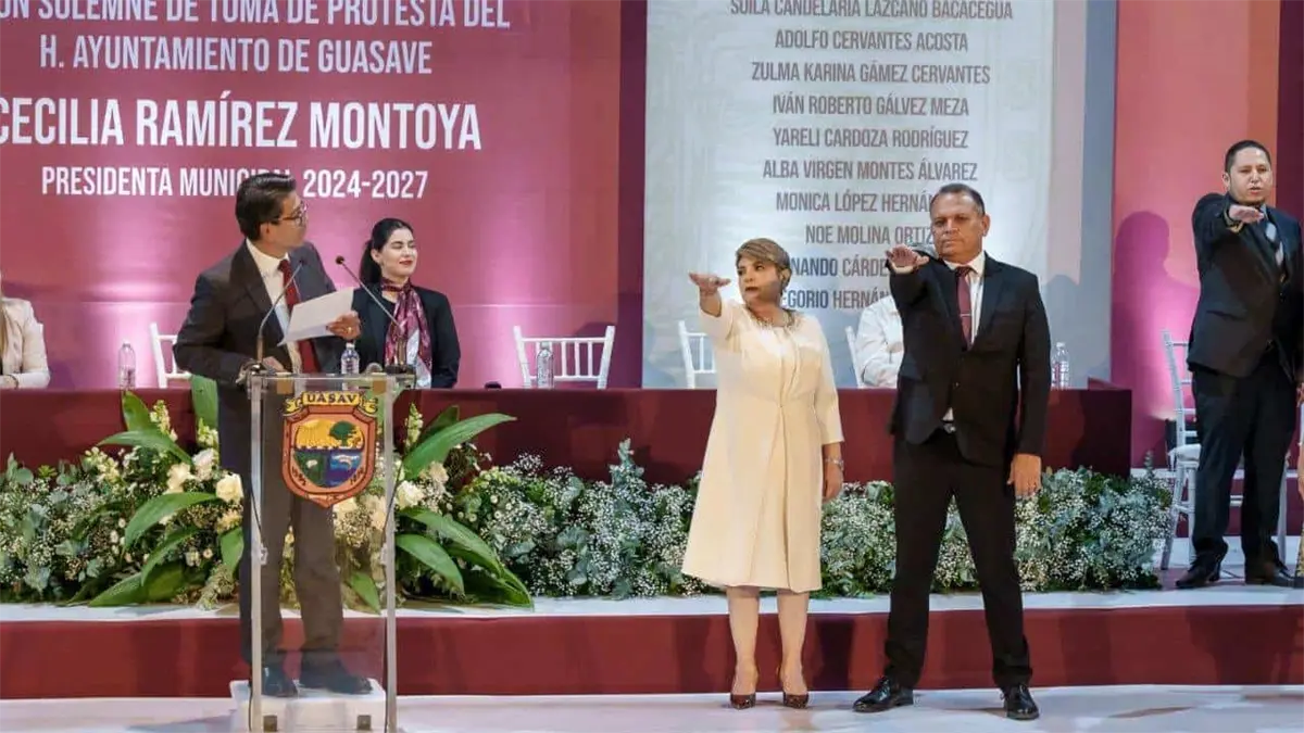 Luego de que el alcalde saliente Martín Ahumada Quintero realizara la sucesión de la administración, en su primer mensaje, Ramírez Montoya reconoció los desafíos económicos y deudas que enfrenta el municipio, pero aseguró que su gabinete paritario trabajará para todos los guasavenses.