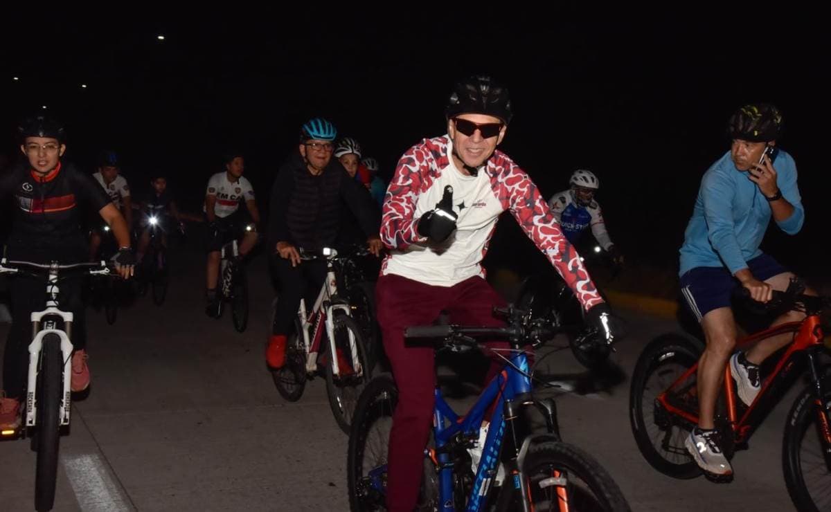 El alcalde de Ahome Gerardo Octavio Vargas Landeros encabezó una rodada amistosa en bicicleta desde Los Mochis hasta el puerto de Topolobampo, la mañana de este domingo, con el objetivo de promover al interior del Ayuntamiento de Ahome acciones de sana convivencia familiar y poner el ejemplo.