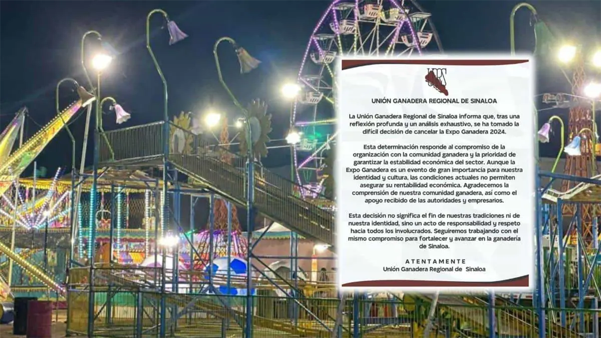 La Unión Ganadera Regional de Sinaloa confirmó la cancelación oficial de la Feria Ganadera Culiacán 2024. La noticia fue comunicada a través de los canales de comunicación oficiales de la propia UGRS.