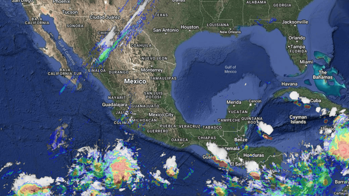 Por otra parte, sistemas anticiclónicos en niveles medios de la atmósfera posicionados en el Océano Pacífico y el Golfo de México, mantendrán baja probabilidad de lluvia en el noroeste, norte y centro del país.