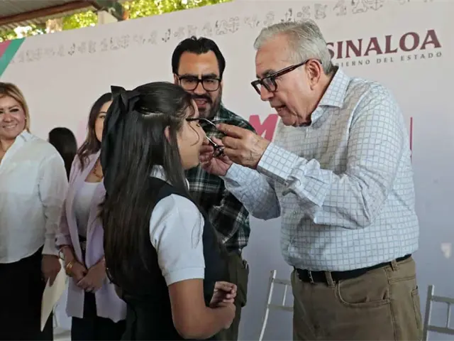 Rocha Moya entrega lentes gratuitos a estudiantes de Sinaloa