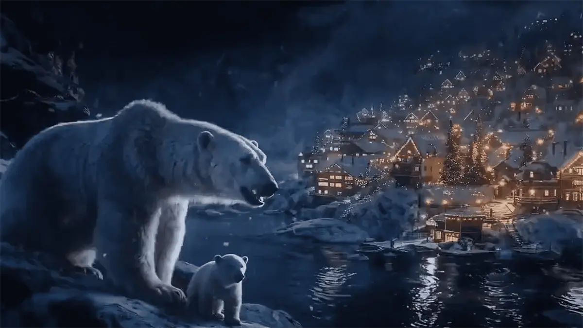 Con una duración de solamente 15 segundos, el nuevo spot navideño contiene alrededor de 10 escenas cortas, entre las que destacan los camiones repartidores adornados con luces navideñas, así como la familia de osos polares que ya se ha convertido en un icono de la marca.