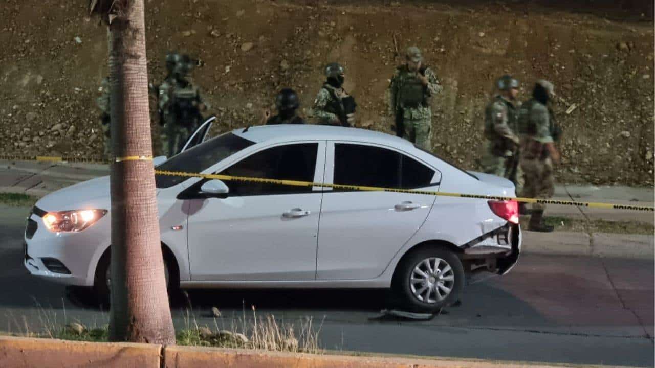 La unidad asegurada por las fuerzas armadas, es un Chevrolet Aveo de color blanco, el cual quedó sobre dicho bulevar.