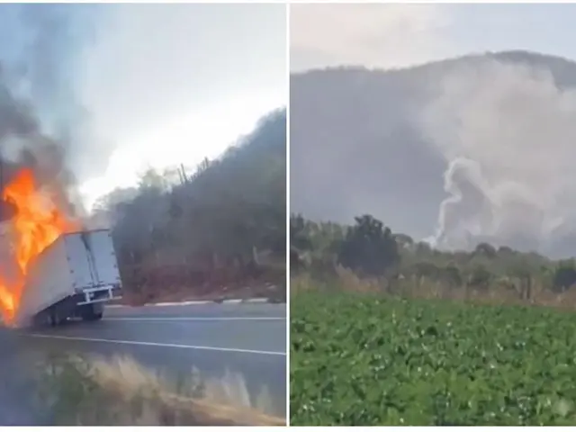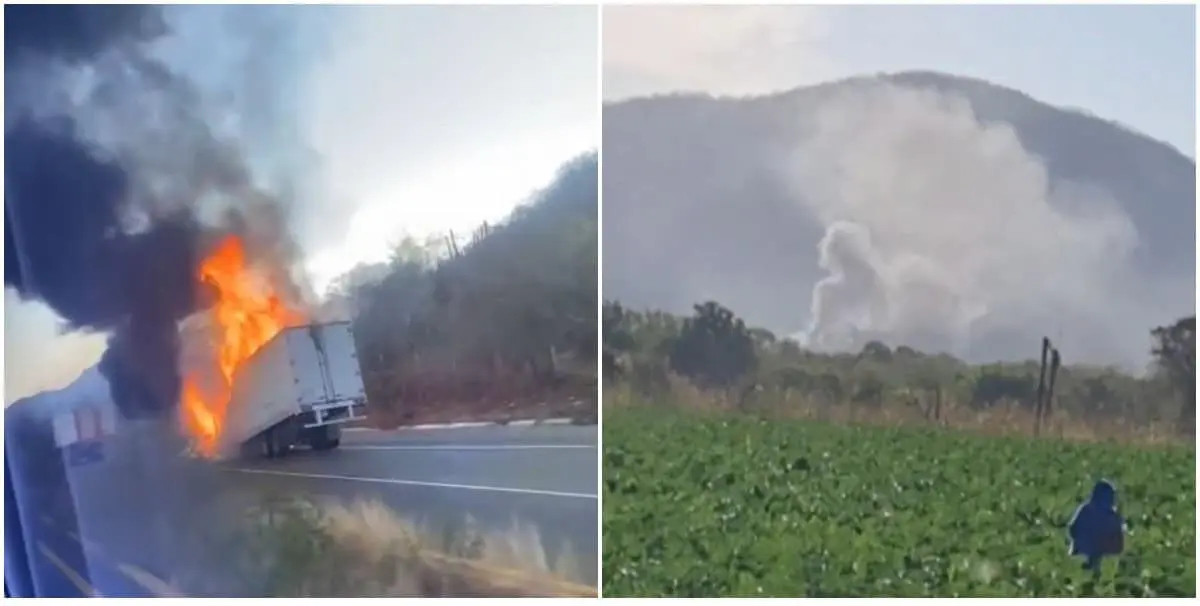 El reporte ciudadano señala que el incendio de los vehículos, un tráiler y un camión de carga tipo torton, se originó de un agarrón entre grupos criminales, quienes habrían de esta manera bloqueado la vialidad para evitar el paso de autoridades.