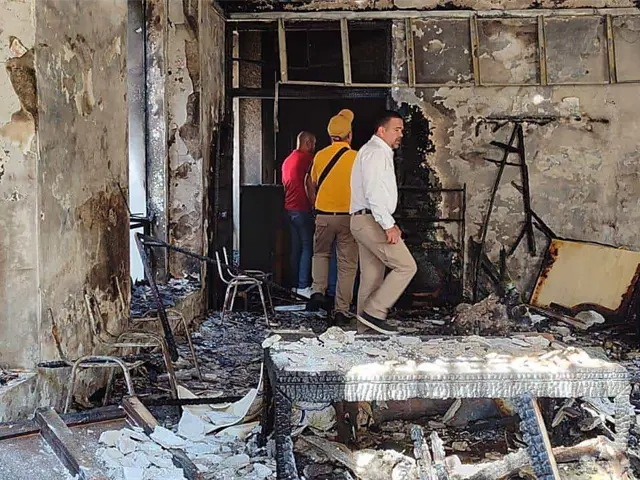"Ahorita se hizo una inspección visual con los ingenieros de obras públicas del estado, del municipio y de Protección Civil municipal donde se aprecia el daño total de la parte inferior derecha del inmueble, lo que eran anteriormente las oficinas de Codesin, afortunadamente a simple vista no se alcanza a apreciar algún daño estructural, lo que si el tema eléctrico va a tener que ser reemplazado al cien por ciento lo que es esa área, y si se comprometió en cierto punto el edificio pues tendrán que hacer lo conveniente" expresó.