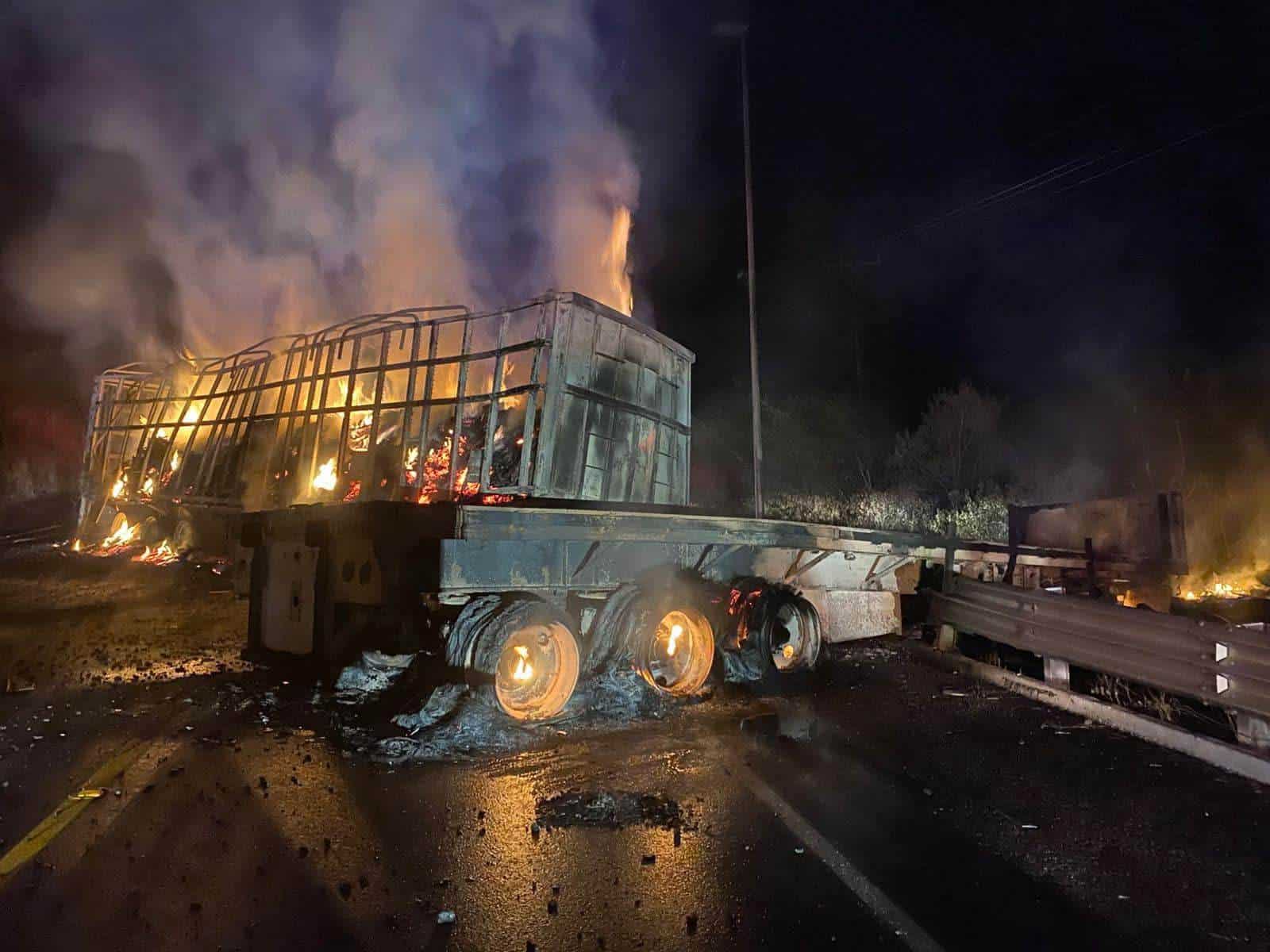 El accidente se dio entre dos trailers, un hecho que provocó el incendio de ambas unidades.