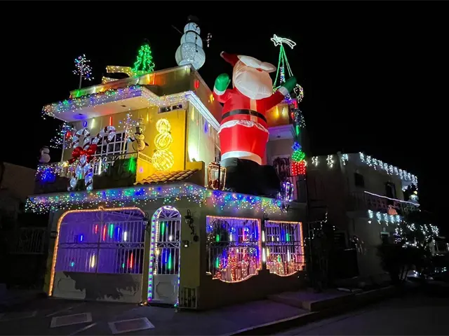 Muñecos de nieve, caramelos, pingüinos y hasta un cascanueces, además de, evidentemente, varias figuras de Santa Claus, adornan la casa, complementándose con series de luces en forma de cascadas, tiras y reflectores.