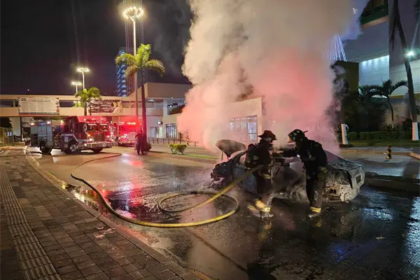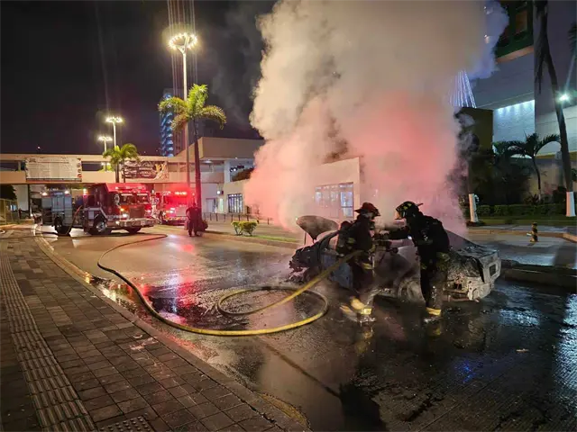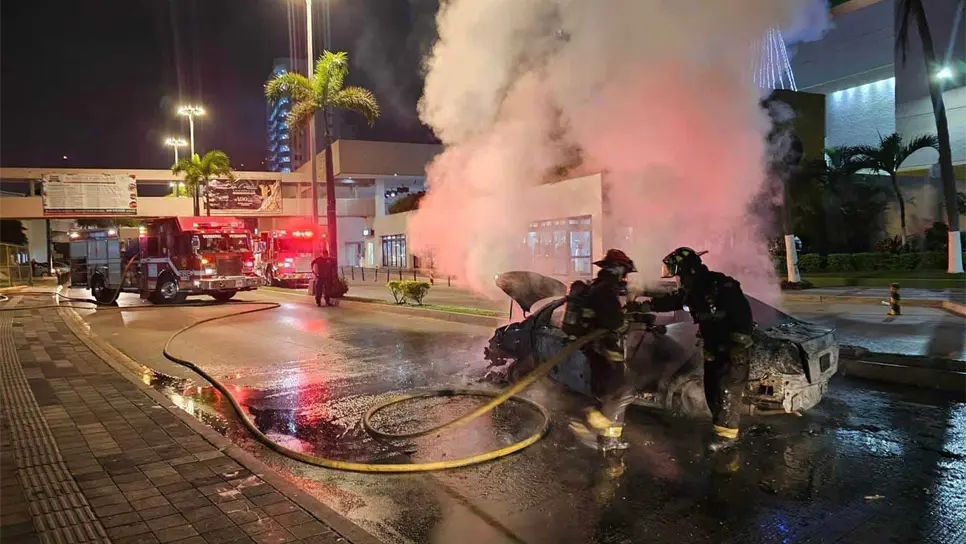 Durante las primeras horas de este sábado, un incendio de vehículo movilizó a los cuerpos de emergencia en la avenida Camarón Sábalo, frente a las instalaciones del Hotel El Cid, en la ciudad de Mazatlán.