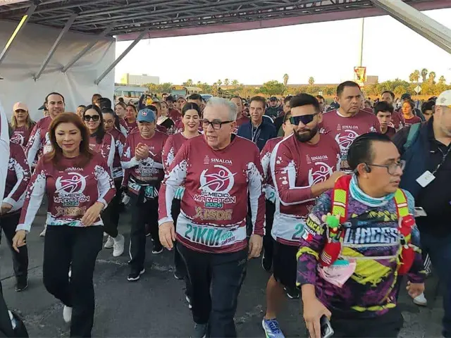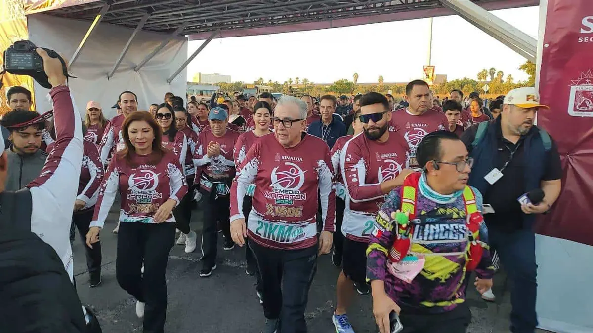 El evento contó con la presencia del gobernador Rubén Rocha Moya, quien incluso participó corriendo 5 kilómetros acompañado por el director general del ISDE, Julio César Cascajares Martínez.