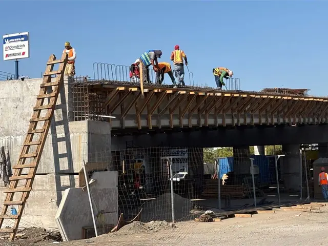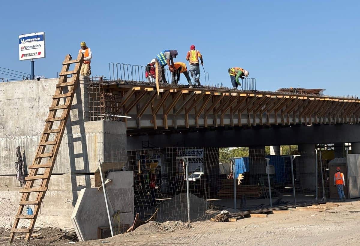 Actualmente, los trabajos en la zona incluyen la colocación de soportes y la preparación para instalar las vigas de concreto que sostendrán el puente, para facilitar estas labores, se han retirado los semáforos de la intersección, y elementos de tránsito municipal trabajan en la regulación del flujo vehicular en la zona.