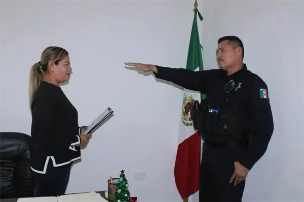 La alcaldesa del municipio de reciente creación, Evangelina Llanes Carreón, fue la encargada de tomarle protesta al nuevo funcionario y señaló el compromiso de otorgarle puntual respaldo para el desarrollo de estrategias que brinden la tranquilidad al municipio.
