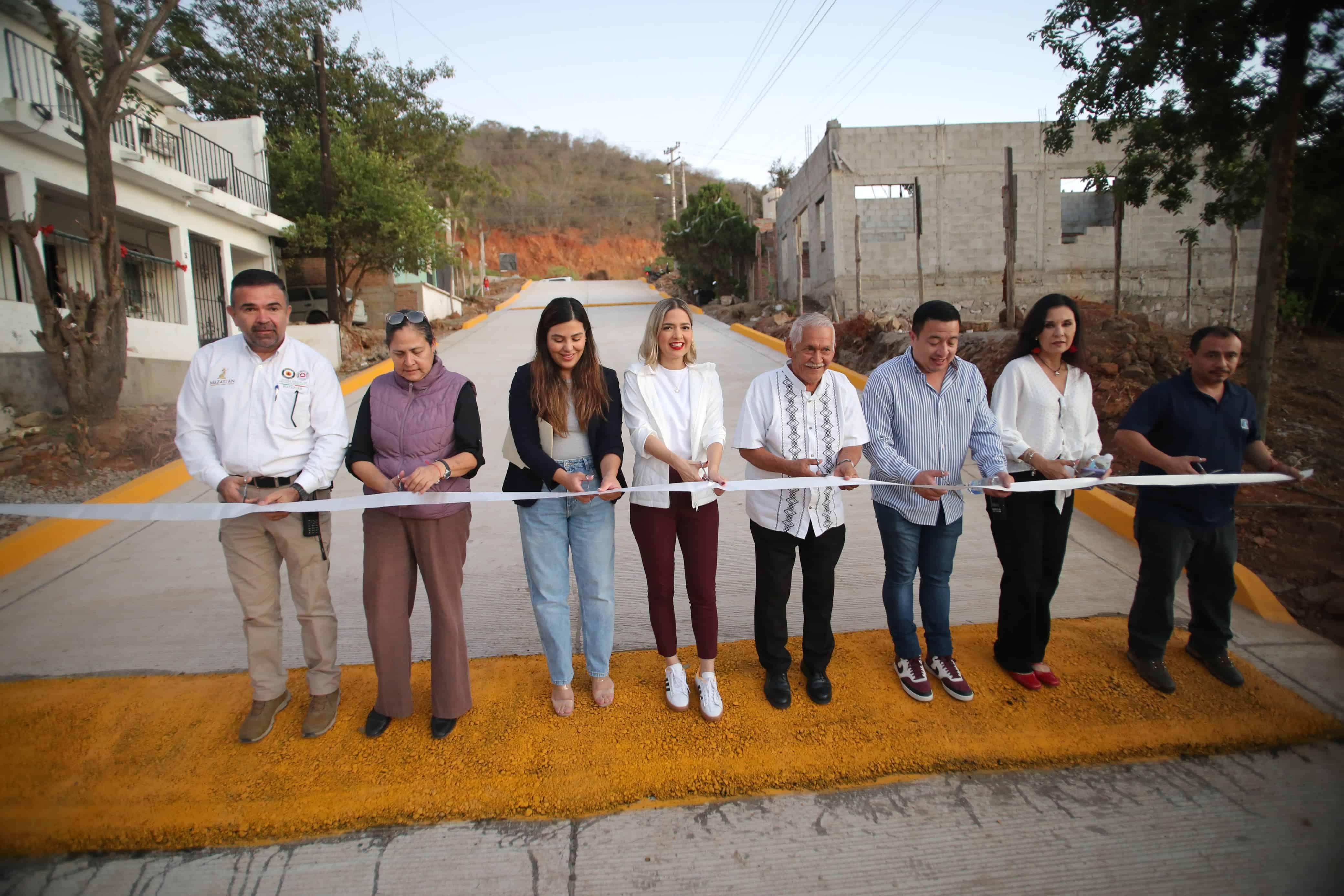 Posteriormente, la Presidenta de Mazatlán se trasladó al fraccionamiento Doña Chonita, donde cortó el listón inaugural del nuevo pavimento y rehabilitación de la infraestructura hidráulica en la calle Atardecer, entre calle Cosmos y calle Teresa de Jesús.