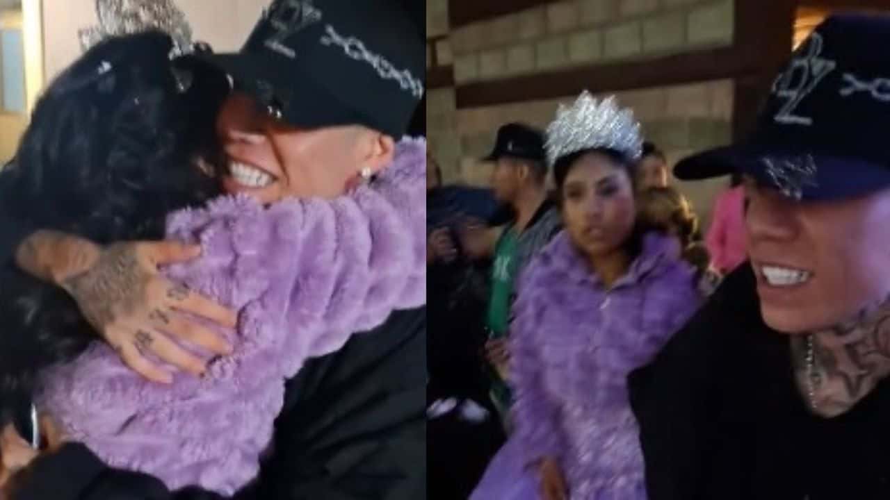 La quinceañera, visiblemente emocionada, no pudo ocultar su sorpresa al ver entrar al rapero en un momento tan especial para ella.