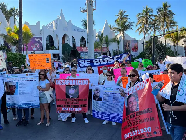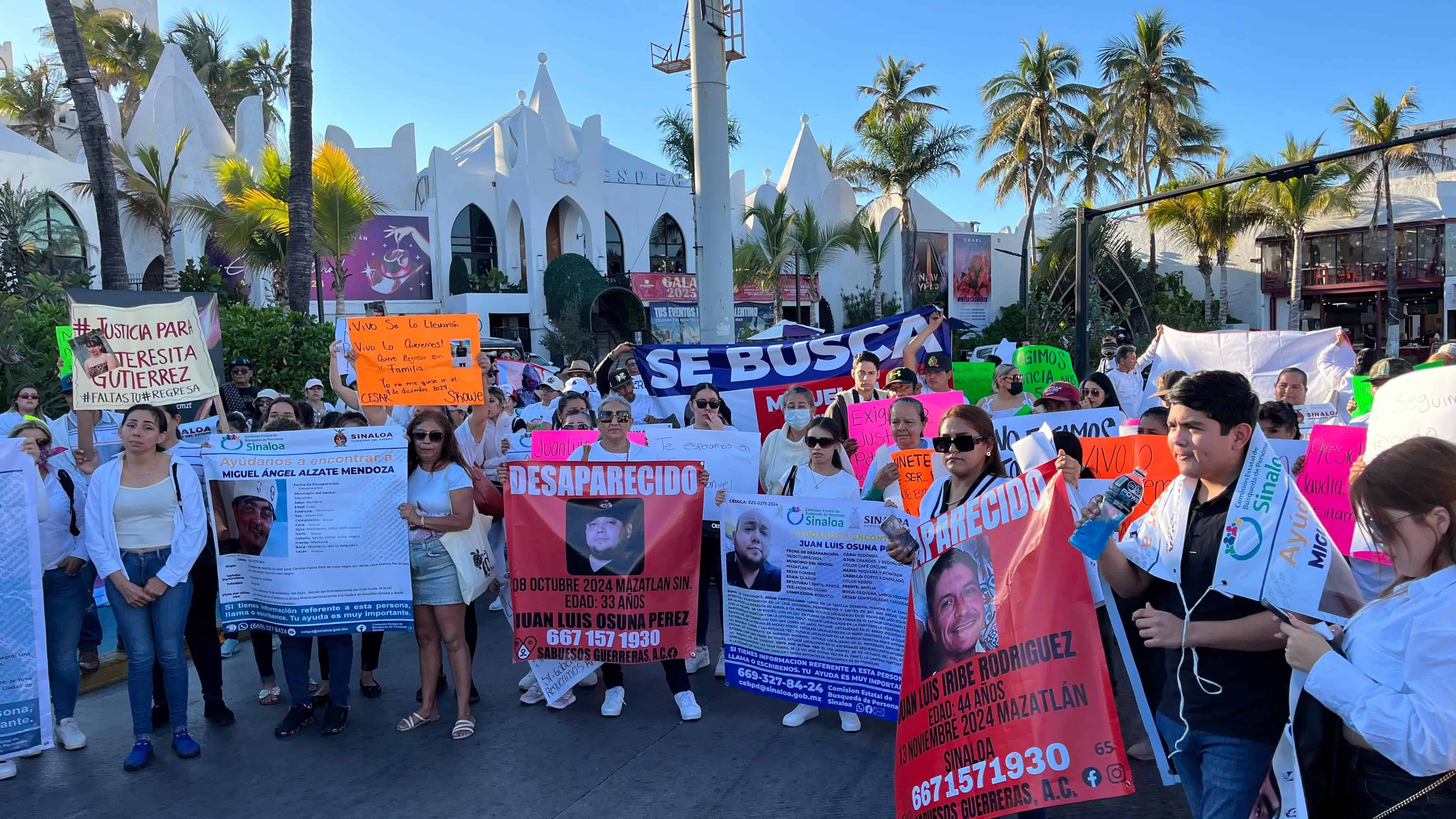 Al grito de “Vivos se los llevaron, vivos los queremos”, este sábado, familiares de personas desaparecidas se manifestaron y marcharon sobre la avenida del Mar, en el sector turístico de Mazatlán.
