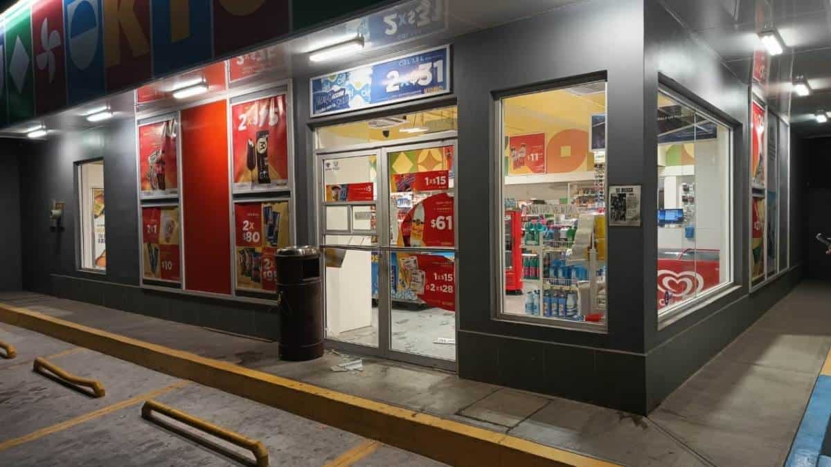 El atraco se dio a las 04:47 horas de este martes, cuando a la tienda que está por la calle Tarahumaras y Donato Bravo Izquierdo llegó un sujeto para destrozar los cristales con piedras.