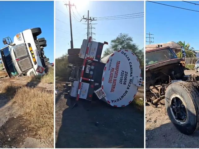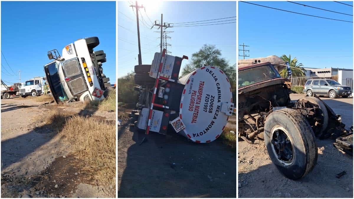 Una pipa cargada con más de 20 mil litros de combustible volcó en la carretera internacional México 15, en el tramo de Los Mochis a Juan José Ríos, luego de que se impactara contra una góndola que intentó retornar en la rúa federal; derivado de esta volcadura otros dos vehículos también colisionaron por descuido de los conductores mientras realizaban las maniobras del primer accidente.