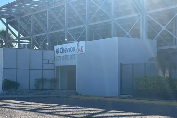 El anuncio de Chevron Life fue instalado durante un espectáculo musical organizado hace meses por un empresario que gestionó el uso del estadio. Esta publicidad quedó en el lugar por comodidad, ya que las lonas instaladas cumplen funciones secundarias, como reducir la entrada de polvo y la luz solar al recinto.