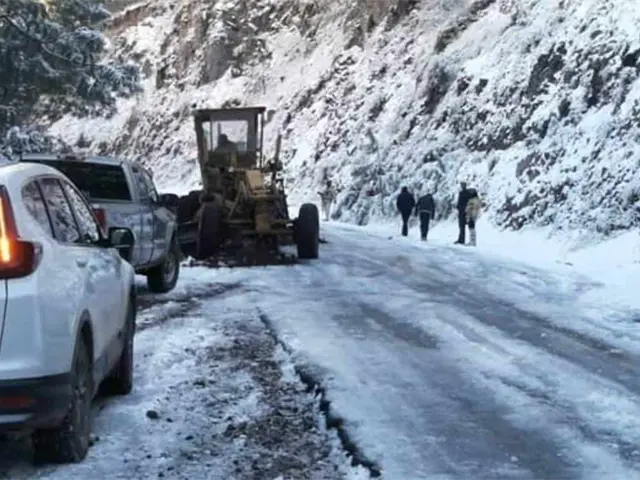 Otra zona carretera afectada en Sonora debido al clima helado ha sido el de Imuris y Cananea, en donde la acumulación de nieve ha hecho imposible la circulación vehicular.