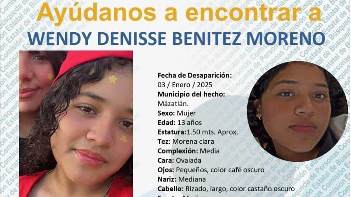Wendy Denisse Benítez Moreno, es una joven de 13 años que se encuentra desaparecida desde el pasado 03 de enero de 2025, por lo que sus familiares han emprendido la búsqueda para dar con su localización.