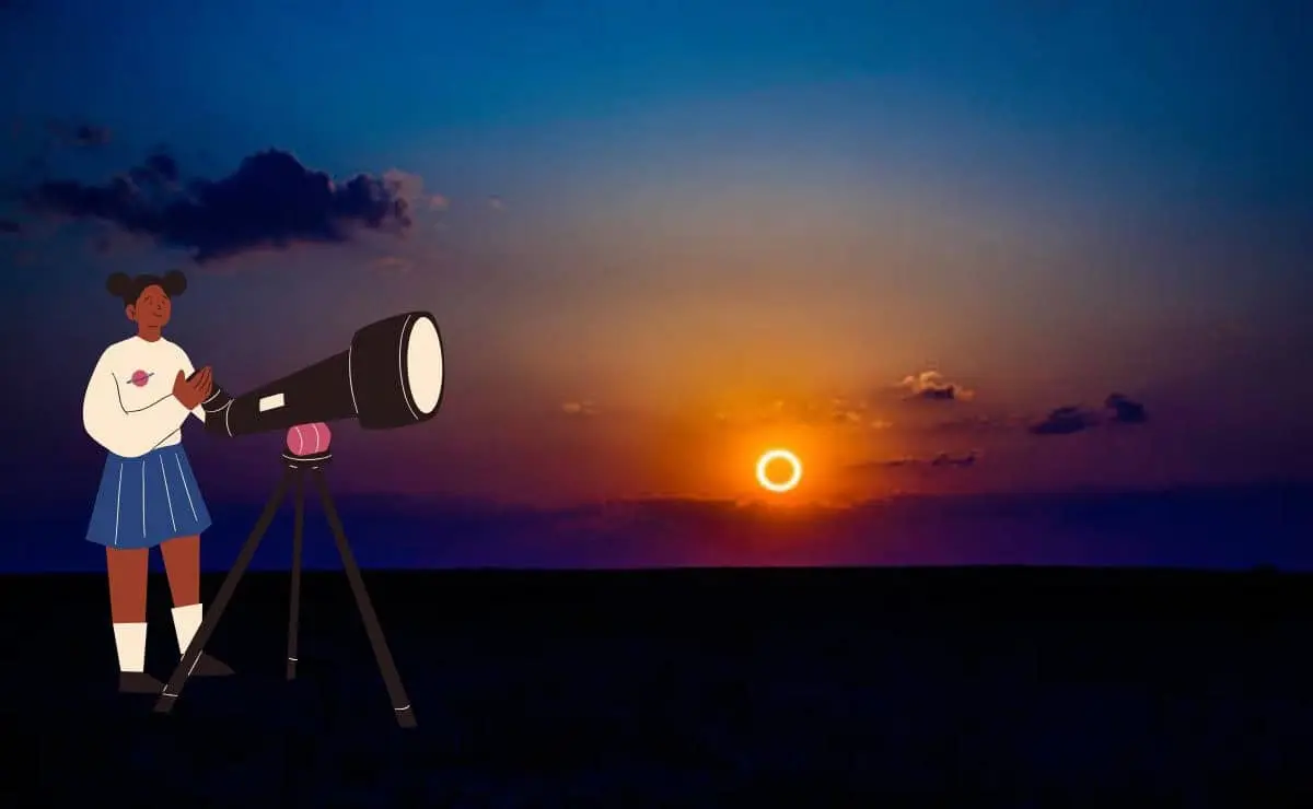 - Eclipse solar anular: La Luna está más alejada de la Tierra en este caso y, aunque se alinea con el Sol, no lo cubre completamente. Como resultado, el Sol aparece como un anillo brillante alrededor de la Luna.