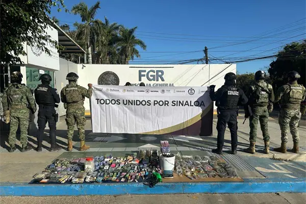 De acuerdo a la información proporcionada la Secretaría de Seguridad Pública de Sinaloa y de la Secretaría de la Defensa Nacional, con apoyo de la Secretaría de Marina, Guardia Nacional, Fiscalía General de la República y Fiscalía General del Estado realizaban actividades de prevención del delito donde aseguraron en el poblado General Ángel Flores, municipio de Navolato, diversas cantidades de droga y objetos de delito conocidos como poncha llantas.
