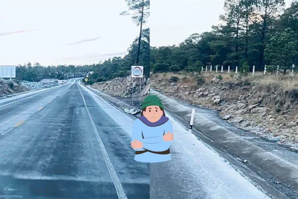 - Autopista Durango-Mazatlán: Entre los kilómetros 50 y 73+800, cerca de la caseta de Llano Grande, se ha formado una capa de hielo en el pavimento, conocida como cristalización. Este fenómeno hace que la carretera sea extremadamente resbalosa, incrementando el riesgo de deslizamientos.