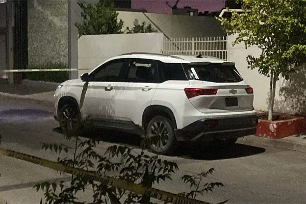 Se trata de una camioneta Chevrolet Captiva blanca de modelo reciente la cual tenía las luces encendidas y el motor en marcha.