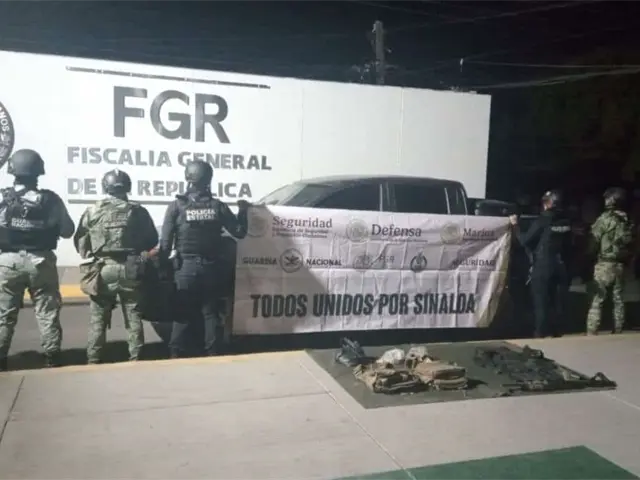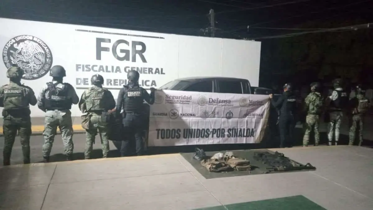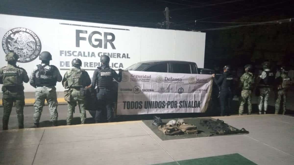 Elementos de los tres niveles de gobierno aseguraron una camioneta blindada, un rifle y 26 cargadores durante un operativo en el poblado Nuevo Mundo en Culiacán.