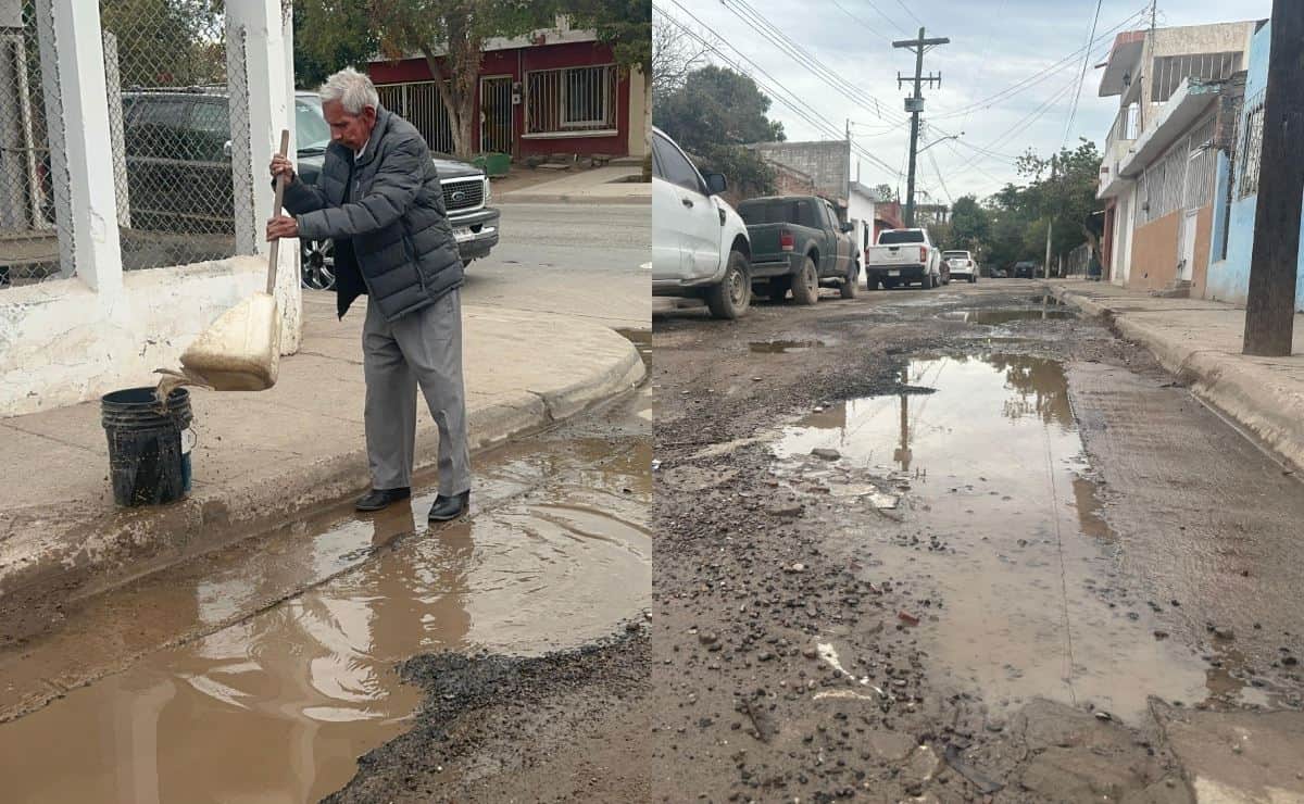 Don Melitón, un hombre de 81 años, enfrenta a diario un problema que ha inundado su vida por completo, se trata de una fuga de agua potable, que comenzó hace más de tres meses en la calle Rosendo G. Castro, en la colonia del mismo nombre.