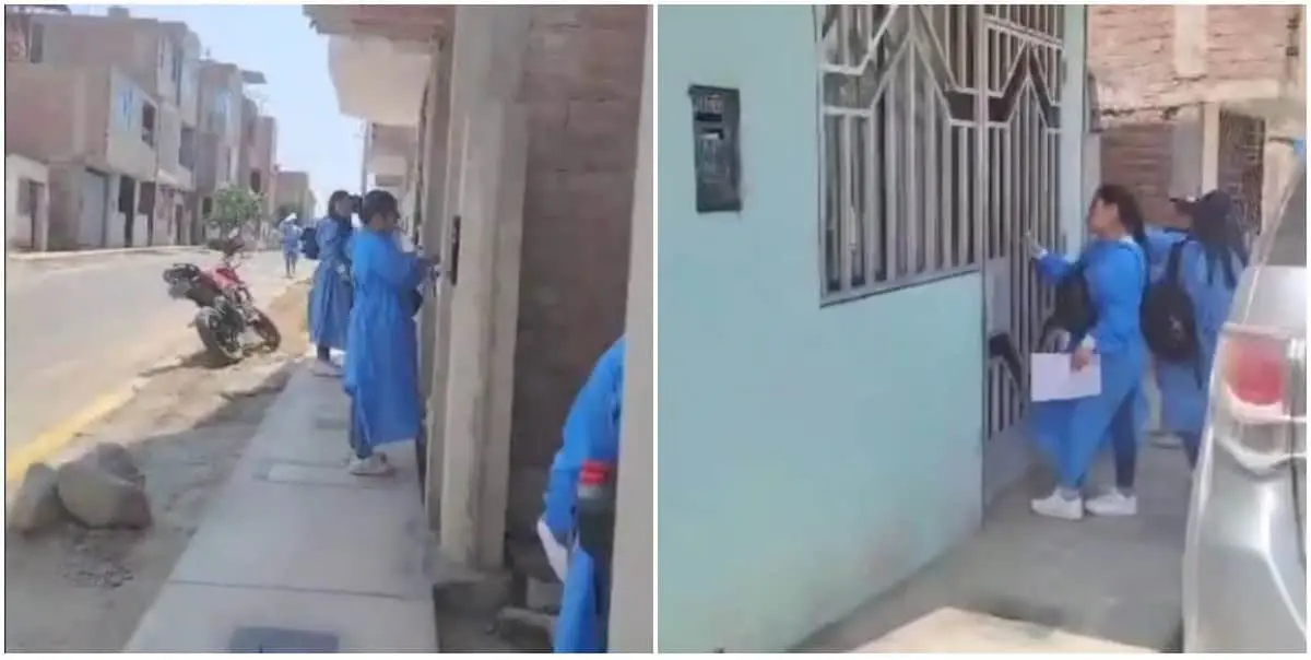 El clip, publicado en la cuenta de Bri (@brii_giri_), muestra a las enfermeras tocando puertas en lo que parecía ser una tranquila mañana, pero con un toque muy peculiar. En lugar de hacer un simple llamado a la puerta, las profesionales de la salud decidieron romper el hielo de una manera divertida. "Señora, salga, no somos Testigos de Jehová, somos enfermeras", decía una de ellas mientras tocaba las puertas, jugando con el temor común de las visitas religiosas no solicitadas, lo que rápidamente desarmó la desconfianza de los residentes.