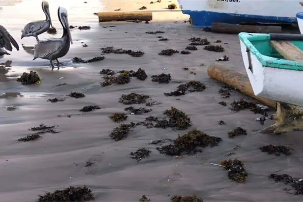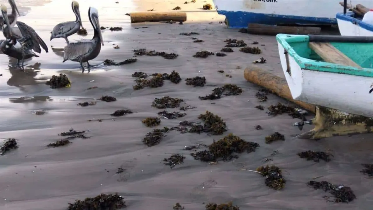 El arribo de esta microalga flotante se debe a la marea alta registrada en los últimos días, fenómeno que, según expertos, es una manifestación del cambio climático que afecta las costas del Pacífico y el Golfo de México.