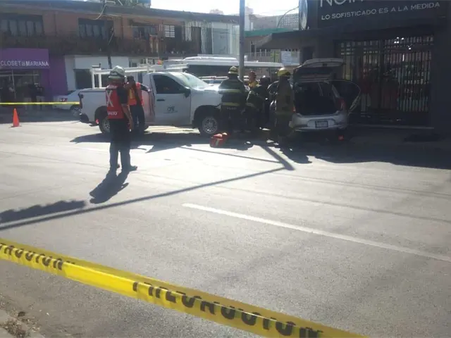 Al llegar al lugar, los bomberos y los equipos de seguridad constataron que la colisión involucraba a una camioneta de la CFE y a un vehículo particular.