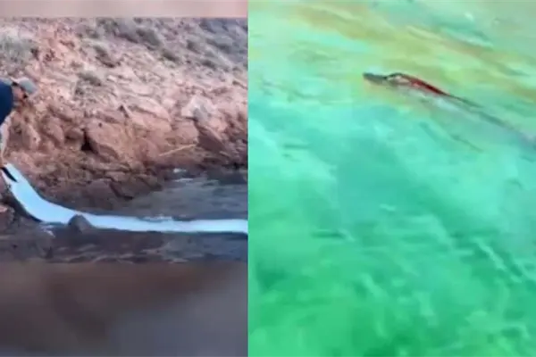 Las personas vieron que el Pez Remo buscaba salir donde estaba atrapado, por lo que un hombre ayudó al animal a ingresar a las aguas, para que este nadara alrededor de la embarcación en señal de agradecimiento por ayudarlo.